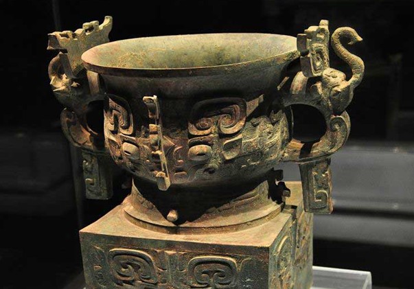 簡介:罍?zhǔn)且环N酒器,流行于商周時(shí)期。母鼓方罍通體均飾以龍紋、云雷紋組成的浮雕獸面。腹部飾有龍紋組成的垂葉紋。器蓋似四面起坡的屋頂狀。四角及罍中部有突起的扉棱。母鼓方罍的蓋內(nèi)鑄有銘文“母鼓”二字。版權(quán)所有山東聊城聊之旅國際旅行社有限公司,轉(zhuǎn)載必究!應(yīng)是鼓國女子嫁與母氏男子所得的稱謂。這件商代晚期的酒器出土于西周貴族墓葬,表明是西周貴族參與滅商戰(zhàn)爭而獲得的戰(zhàn)利品,是商晚期青銅酒器中的精品。
