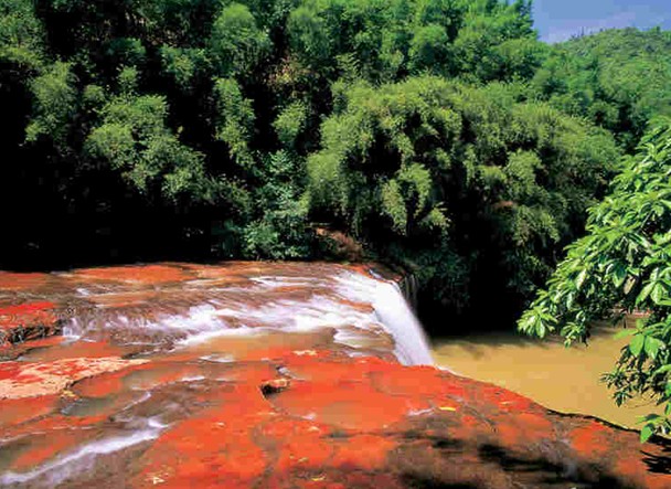 四洞溝瀑布群,是赤水國家級重點(diǎn)風(fēng)景名勝區(qū)的重要組成部分。位于貴州省赤水市大同鎮(zhèn)境內(nèi),離城區(qū)十五公里。景區(qū)是由四洞溝一段約四公里的山溪間,按大致相等的距離排列著四級跌水瀑布為主體,包括華平瀑布,構(gòu)成赤水“千瀑之市”的形象景區(qū)。
