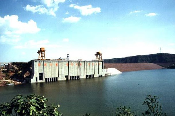大壩主壩為混凝土重力壩,壩長713.2米,最大壩高106米;副壩為鋼筋混凝土心墻,長144米,最大壩高24米;主、副壩總長857.2米。電站廠房為壩后式,全長223.88米,寬26.2米,可安裝8臺發(fā)電機組,現(xiàn)有7臺機組,發(fā)電量41萬千瓦,為低水頭徑流發(fā)電。