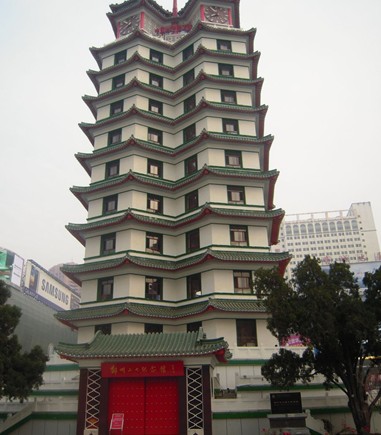 二七紀念塔,位于鄭州市二七廣場,建于1971年,鋼筋混凝土結構, 是我國建筑獨特的仿古聯(lián)體雙塔,它是為紀念京漢鐵路工人大罷工而修建的紀念性建筑物。2006年被列為全國重點文物保護單位,中國最年輕的全國重點文物保護單位(建于1971年,距今僅有不到四十年的歷史)。