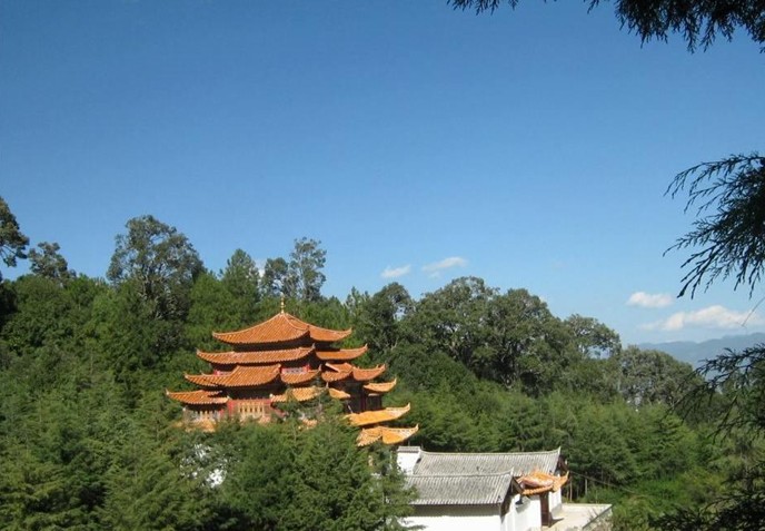 麗江文筆山由十二個(gè)景點(diǎn)組成,以文峰寺為主要代表。文峰寺坐落于文筆山腹地,始建于乾隆四年(1739年),西藏噶瑪噶舉(白教)四寶法王到麗江,要求知府官學(xué)宣倡建廟宇,歷時(shí)五年修成。道光八年(1828年)重修大殿,藏名稱“桑納迦桌林”。