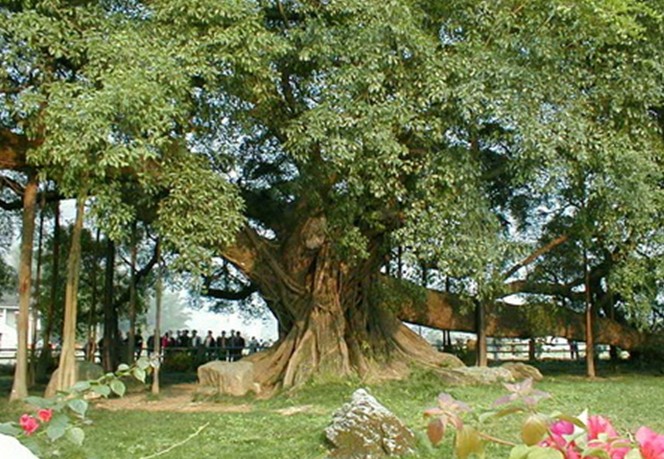 勐養(yǎng)象形樹距離景洪縣勐養(yǎng)鎮(zhèn)200多米,是一株奇特的百年古榕,樹高20多米,冠幅寬30多米,兩根粗大的寄生根,扎于地下,氣生根形似大象,形成一座汽車也開得過去的圓形大拱門,主干根部長出的一大片盤根,就像一座天然假山。