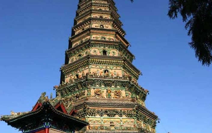 密檐之上,即為塔剎,自上向下由寶珠、七重相輪、寶裝蓮花式覆缽等組成,高約3.5米。全塔外部,原來(lái)都敷以白灰皮。版權(quán)所有山東聊城聊之旅國(guó)際旅行社有限公司,轉(zhuǎn)載必究!塔室內(nèi)空,由四面券門(mén)可至。塔室上層以疊澀內(nèi)檐分為10層,最下一層內(nèi)壁仍作十二邊形,二層以上,則改為八角形。這種富于創(chuàng)造與變化的建造工藝,表現(xiàn)出我國(guó)勞動(dòng)人民的高超建筑才能。