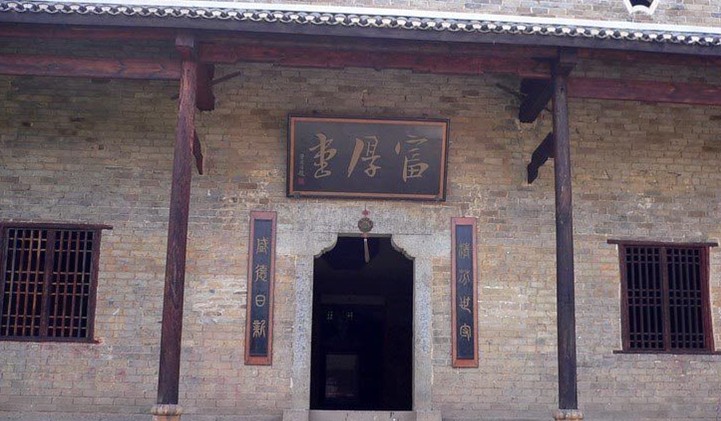 富厚堂座南朝北,背倚的半月形鰲魚山從東南西三面把富厚堂圍住。從遠看去,富厚堂好似坐在一張圍椅中。周圍自然環(huán)境優(yōu)美,后山上樹木茂密,古樹參天。門前是一片較開闊的平地,平地中有小河向東流去,平地四周峰巒疊嶂,群山環(huán)抱。