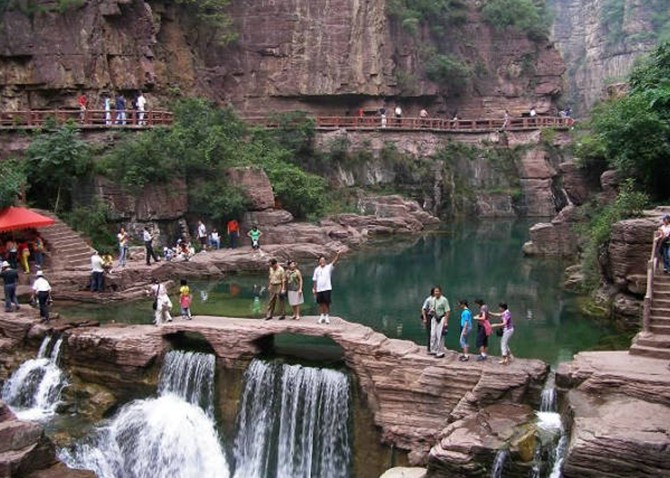 中國(guó)道教研究所所長(zhǎng)、張?zhí)鞄煹诹宕障祩魅?、中?guó)道教協(xié)會(huì)副會(huì)長(zhǎng)張繼禹道長(zhǎng)為云臺(tái)山題詞:“天師二十四治之蒼溪云臺(tái)山”。 1995年,山西師范大學(xué)美術(shù)系教授袁有根來(lái)此實(shí)地考察,意外驚喜的發(fā)現(xiàn):云臺(tái)山全貌竟與“太極陰陽(yáng)八卦圖”驚人的相似!云臺(tái)山黛青的山體呈魚形,“魚頭”所在叫“舍身崖”,據(jù)傳當(dāng)年張道陵命弟子王長(zhǎng)、趙升在此投身絕壑以取仙桃,由此脫去凡軀,版權(quán)所有山東聊城聊之旅國(guó)際旅行社有限公司,轉(zhuǎn)載必究!得以升仙;白霧飄渺的山側(cè)空谷亦呈魚形,“魚眼”為谷底一天然清泉,泉水清澈甘甜,冬暖夏涼。兩“魚”一黑一白,一動(dòng)一靜,一實(shí)一虛,一陰一陽(yáng),首尾相交,渾然相合。主山體周圍還有八個(gè)山丘,分別為紫陽(yáng)山、銅鼓山、博樹埡、文成山、雙山埡、文筆埡、北斗山、冒火山,構(gòu)成“八卦”。