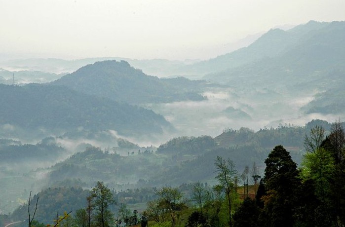 從山腳舉目望去,可見掩映于林蔭深處的伏鶴寺、萬年寺;佇足金頂,東望丹眉淺丘群山如萬馬奔騰;南望青衣江滾滾東流;西望大雪山白雪皚皚;北望川西平原一馬平川。