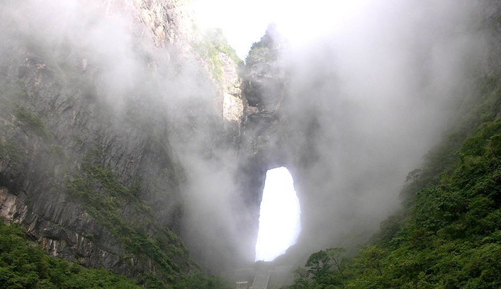 世界最高海拔天然穿山溶洞天門(mén)洞堪稱傳奇的代表。天門(mén)洞懸于海拔1300余米的峭壁之上,高131.5米,寬57米,深60米,終年吐云納霧,震世撼俗。古往今來(lái),無(wú)論是帝王將相還是平民百姓都把天門(mén)洞作為祈福許愿的靈地。而天門(mén)洞,就像一首無(wú)聲的詩(shī),承載了無(wú)數(shù)人的夢(mèng)想,也給人無(wú)限的想象!從1999年世界特技飛行大師穿越天門(mén)開(kāi)始,天門(mén)山注定成為一個(gè)永遠(yuǎn)被世界所聚焦的傳奇之地!2006年,俄羅斯最高飛行戰(zhàn)將含淚吻別天門(mén),讓天門(mén)洞一度成為了一個(gè)不可逾越的神話;版權(quán)所有山東聊城聊之旅國(guó)際旅行社有限公司,轉(zhuǎn)載必究!2007年,法國(guó)著名蜘蛛人打破神話,成功徒手攀越天門(mén),將生與死的絕壁芭蕾如花綻放,天門(mén)洞由此成為了奇跡誕生地的代名詞。