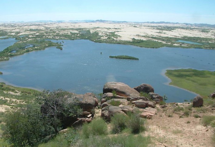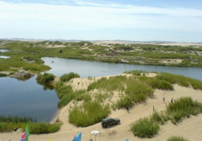 玉龍沙湖位于內(nèi)蒙古赤峰市翁牛特旗烏丹鎮(zhèn)境內(nèi),國家AAA級景區(qū),距赤峰市90公里。旗政府所在地烏丹鎮(zhèn)區(qū)與該景區(qū)有三級油路相通。玉龍沙湖度假區(qū)集沙漠、沙地、古松、怪石、奇峰、濕地、草原、湖泊為于一身,5萬畝草原與茫茫無邊的科爾沁沙地相連,沙地中有一眼清泉,泉水噴涌近1米高,每小時噴水數(shù)百噸,在沙漠中積水成湖。