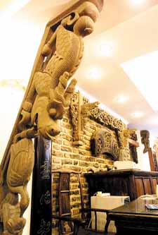 粵唯鮮位于天津小洋樓集中區(qū)域—五大道附近,這里不僅僅是家餐廳,它的另一個(gè)招牌是華蘊(yùn)博物館,馮驥才為它題詞:“能吃的博物館”,也算是中國(guó)唯一了。華蘊(yùn)博物館所陳列的展品囊括了西周至清朝各個(gè)歷史時(shí)期最典型的青銅器、銅器、木雕、石器、老門窗、彩繪木人、煙具、屏風(fēng)、座鐘、桌椅、木箱、提盒、老鐵、鐘等100多種的3000余件文物最早的可追溯到公元二三千年前。華蘊(yùn)博物館的特色之處還有世界上第一的石頭酒吧?;浳r的石頭酒吧開創(chuàng)了石文化第一,這里擺放的石頭多是漢白玉的,囊括了北齊、北魏、宋元明清等朝代的300余塊石頭。而且石頭酒吧所收藏的漢白玉石器無(wú)論是其數(shù)量還是質(zhì)量在全國(guó)乃至全世界都是一流的。酒吧的格調(diào)是中西合璧,古樸、不失現(xiàn)代風(fēng)格。