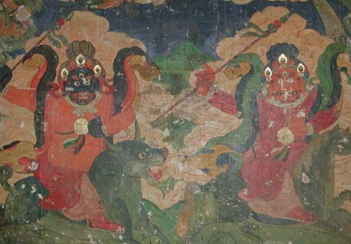 惡龍?zhí)稍谘蠢锘杳赃^(guò)去,三姐妹一看惡龍還有一個(gè)頭,知它不能死,就用各種神法治惡龍于死地,但這些法子都不頂用,三姐妹著了急,如果惡龍醒來(lái),打到天宮去,我們姐妹就更吃罪不起了。正在這時(shí),托塔天王巡天回宮交旨,路過(guò)這里,三姐妹趕緊迎了上去,說(shuō)明事情根由,天王說(shuō):"惡龍作孽累累,罪刻萬(wàn)死!它神通廣大,你們哪能是它的對(duì)手?我助你們一臂之力,你等需在惡龍的頭、腰、尾各筑一塔,便大功告成。"說(shuō)完,默念咒語(yǔ),吐三口神氣,那惡龍乖乖地翻了白。三姐妹謝過(guò)天王便忙于去筑塔。天王說(shuō):"一個(gè)時(shí)辰,必須在天鼓響之前筑完。"說(shuō)罷駕起祥云回天宮交旨。