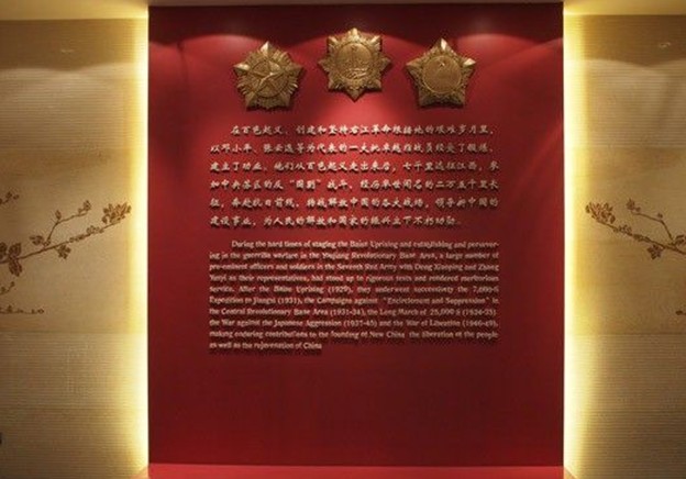 立體梯型建筑,4米高的銅門,威嚴(yán),進(jìn)門赤紅紅七軍石浮雕,走入潔凈的每個展覽廳:起義廳、英雄廳、將軍廳、分為3層。有在廣西各個縣參與起義就義英雄名單。300多行,每行12個名字,3000多人。