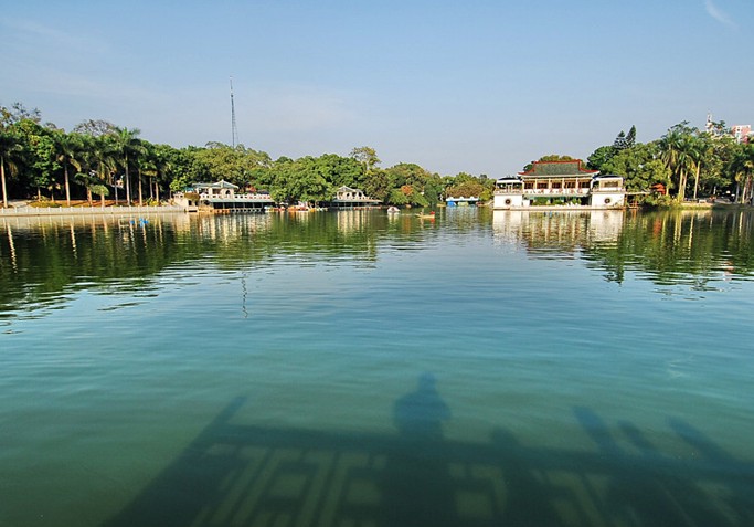 人民公園又稱白龍公園。面積50多萬平方米。圓內(nèi)有一約7萬平方米的白龍湖,湖水澄碧。據(jù)宋人王象之《興地記勝》載,宋名將狄青曾駐望仙坡,見坡下湖邊一群白羊頗似龍形。因此以白龍名此湖??梢姲埡呀?jīng)有上千年的歷史。湖岸翠竹掩映,垂柳搖曳。湖心有小島,島西的九曲橋和島北的三孔月橋?qū)u與湖岸相連。湖面的游艇,或藍(lán)天下競渡,或綠蔭徜徉,亦成一景。