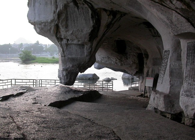 相傳古時(shí)有一老漁翁,在還珠洞拾得龍珠而惹怒海龍王,其興風(fēng)作浪,給百姓帶來災(zāi)害。后官府命老翁將龍珠歸還,方使天下太平,故此得名。洞內(nèi)玲瓏剔透,勾連曲暢,有唐人造像、宋代題刻100多件,其中宋代大書畫家米芾的題名、自畫像和詩人范成大的題詩堪稱珍品。洞的東面豁然開朗,洞口下面即是深不見底、碧波幽水的伏波潭。臨江有一石柱下垂,上粗下細(xì),底端有一寸多的空隙與地面相接,似被劍劈而開,堪稱鬼斧神工。傳說是伏波將軍試劍所致,故稱試劍石。有好奇的游人,都曾伏在試劍石下方的大石塊上,伸手摸一摸這奇妙的縫隙。 千佛洞從試劍石旁沿石階盤桓而上,可達(dá)千佛洞,內(nèi)有唐代摩崖造像239尊,加上僅有斧鑿痕跡尚未成形的共有400尊之多,成為唐代崇尚佛法,佛教盛極一時(shí)的標(biāo)志,具有很高的鑒賞和研究?jī)r(jià)值。