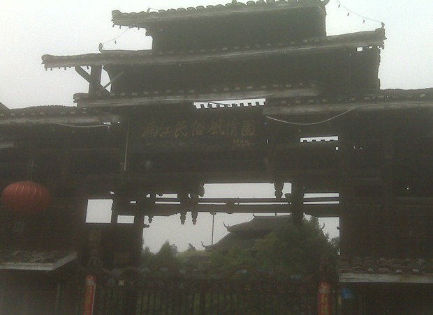在大門正前有極富民俗色彩的圖騰柱群,刻畫出了自民族的原始圖騰,神秘富有美感。圖騰柱的北方有一個大廣場,輪流演出各民族的特色節(jié)目:壯族的板鞋舞,苗族的蘆笙踩堂,侗族的多耶等還有斗雞、斗馬、上刀山、射駑等民族游樂活動