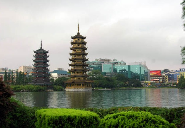 杉湖位于廣西桂林市區(qū)中心,秀峰區(qū)、象山區(qū)接合處,中山路穿過湖區(qū),陽橋的東側(cè),向東通漓江,西接榕湖,北與中心廣場比鄰,因湖邊長有杉樹命名。是桂林城中開放式步行休閑公園。 杉湖常與榕湖一起合稱榕杉湖。杉湖東西長約390米,平均寬度180米,水域面積7.02公頃。杉湖與榕湖相接的前段,波濤徐徐,與周圍的綠色相映成趣,晚上燈光漫射在波濤上,延湖邊游走,別有一番趣味。