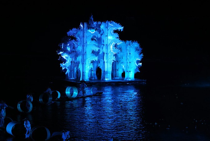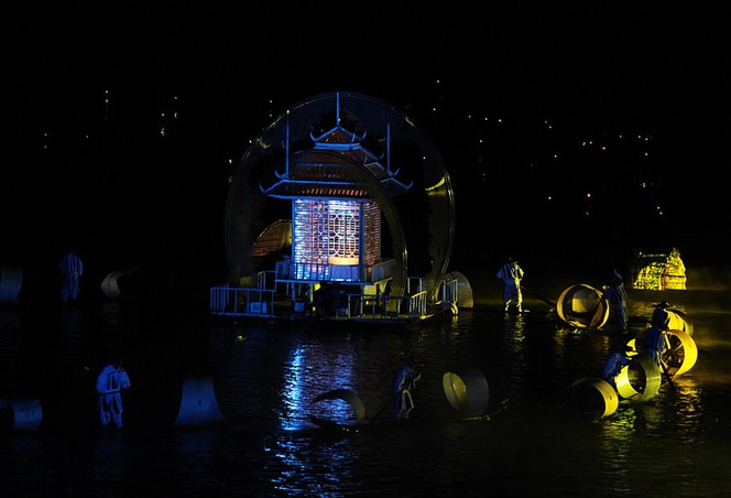 演出以"印象劉三姐"為總題,大寫(xiě)意地將劉三姐留給人們印象中的經(jīng)典山歌、民族風(fēng)情、漓江漁火等元素創(chuàng)新組合,不著痕跡地溶入于山水,還原于自然,成功詮釋了人與自然的和諧關(guān)系,創(chuàng)造出天人合一的境界,被稱(chēng)為"與上帝合作之杰作"。演出把桂林、陽(yáng)朔舉世聞名的兩大旅游、文化資源--桂林山水和劉三姐留給人們的印象進(jìn)行巧妙地嫁接和有機(jī)的溶合,讓自然風(fēng)光與人文景觀(guān)交相輝映。演出立足于桂林,與桂林的音樂(lè)資源、自然風(fēng)光、民俗風(fēng)情完美地結(jié)合,我們看演出的同時(shí),也在看漓江人的生活。