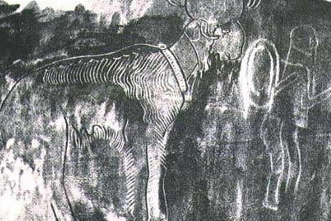 動物以牛和鹿居多,牛的形態(tài)有被狩獵的牛和單獨靜態(tài)的牛,在制作中對小頭,大角,戶胛從藝術(shù)上作了夸張?zhí)幚恚怀隽碎L形尾巴。版權(quán)所有山東聊城聊之旅國際旅行社有限公司,轉(zhuǎn)載必究!對鹿角作了大膽夸張,枝叉打鑿得很精細狩獵畫面4幅,有車獵,單人獵圍獵等三種方式;戰(zhàn)爭畫面有2幅,兩人站立對身,腰懸箭囊,兩矢相連;生殖畫面一幅,男為側(cè)身,女為正面,突出了生殖器的部位。