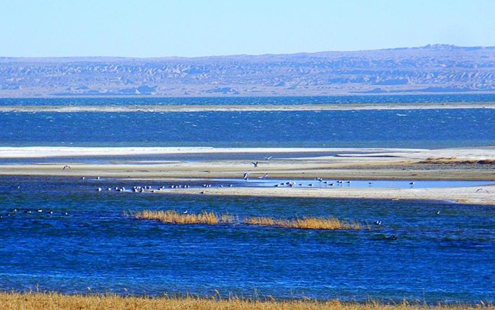 托素,也是蒙古語,意為“酥油”。托素湖的面積比可魯克湖大3倍還多,約180多平方公里,是一個典型的高原內(nèi)陸湖。托素湖周圍是一望無際的戈壁灘。