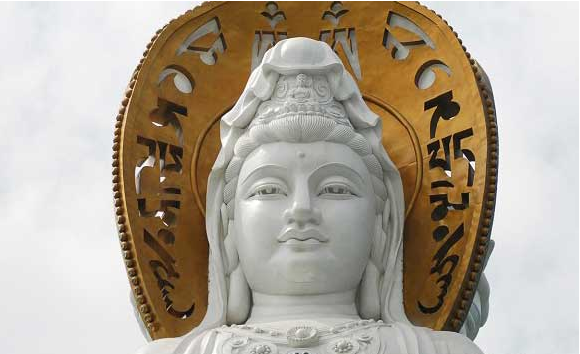 觀音圣像總體表示觀音“大慈與一切眾生樂、大悲拔一切眾生苦”的大慈大悲形象。如果說(shuō)自由女神像代表了西方世界“自由”、“平等”、追求個(gè)性解放的思想,那么南山海上觀音圣像就是東方世界“慈悲”、“智慧”與“和平”的精神象征。