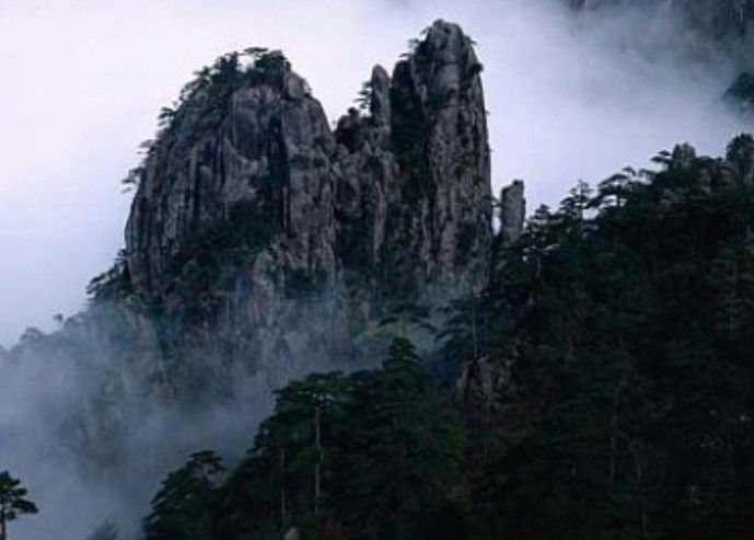 筆架山是一座石山,十分陡峭。山巖猶如刀削,看不見(jiàn)行人的蹤跡。山中只有一條埋藏在密林中的彎曲小徑,可將人引上山去。上了筆架山頂,一眼望去,翠綠的青山,猶如一座座剛從大海里冒出來(lái)的潔凈小島,一會(huì)兒被驚濤大浪埋進(jìn)云海,—會(huì)兒又被海水輕輕推出海面,露出一點(diǎn)點(diǎn)蒼翠的山頂。灰朦朦的流云飛霧,終日在筆架山上如浪似濤般地滾動(dòng)著,翻卷著,那么縹緲、那么幽靜、那么引人遐想!