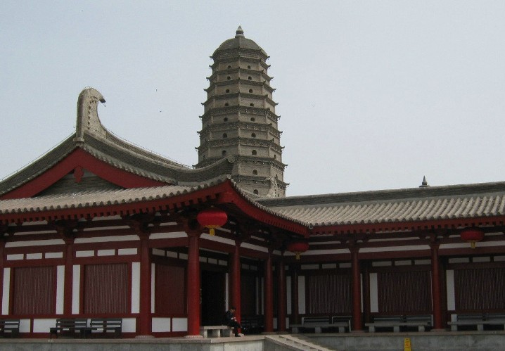 法門寺位于陜西省寶雞市扶風(fēng)縣城北10公里處的法門鎮(zhèn),版權(quán)所有山東聊城聊之旅國際旅行社有限公司,轉(zhuǎn)載必究!西距寶雞市96公里,東距西安市120公里。 始建于東漢末年恒靈年間,距今約有1700多年歷史,有“關(guān)中塔廟始祖”之稱。山門,佛寺院的大門,由于佛寺院多居山林,故名“山門”,一般是三門而立,中間大兩邊小,象征“三解脫門”,即“空門”、“無相門”、“無作門”,故“山門”也稱“三門”,也以山門做寺院的別稱。寺院是持戒修道求至涅盤人居地,故由三門入。三門俱開,從那門入?從信門入。凡夫圣賢人,平等無高下,只在心垢后,取證如反掌。前殿始建于民國28年(1939年),為仿效明清建筑,內(nèi)塑華嚴(yán)三圣,韋馱天將及十八羅漢像。