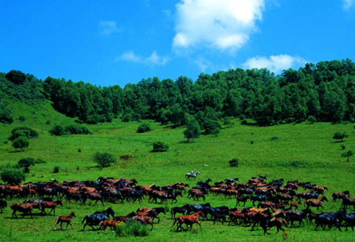 西周初年,秦人先祖非子就在汧渭之間為周王室飼牧養(yǎng)馬,“馬大蕃息”,功績(jī)卓著,周孝王8年(前890)被封為食邑,建城于現(xiàn)在隴縣牙科鄉(xiāng)磨兒塬。公元前776年,秦襄公遷建汧邑,位于現(xiàn)在隴縣東南鄉(xiāng)鄭家溝塬,公元前770年,襄公護(hù)送周王室東遷洛邑,有功于周平王,被正式封為諸候,汧邑成為秦國(guó)第一個(gè)都城持續(xù)到公元前762年,長(zhǎng)達(dá)14年,秦人在隴山山地草原由畜牧業(yè)起步,完成了從游牧向農(nóng)業(yè)民族的轉(zhuǎn)變過程;也正是在千河平原建立了諸候國(guó),走向了關(guān)中平原,進(jìn)而統(tǒng)一了全國(guó)。因此,隴山山地和千河流域是秦文化的發(fā)祥地,也是中華民族統(tǒng)一的漢文化形成的發(fā)源地之一。 秦統(tǒng)一后,隴山千河之地雖成為一普通的州縣,但仍為西北之門戶,巖疆重地,系全秦之安危,被視為“咽喉呼吸之關(guān),鎖鑰關(guān)鍵之固”的兵家必爭(zhēng)之地。版權(quán)所有山東聊城聊之旅國(guó)際旅行社有限公司,轉(zhuǎn)載必究!漢王朝初期,北疆游牧民族統(tǒng)一于匈奴軍事帝國(guó),占有很大軍事優(yōu)勢(shì),漢王朝被迫采取“和親”之策,以勉其掠州奪郡。漢武帝時(shí)轉(zhuǎn)為戰(zhàn)略反攻,終于挫敗匈奴,奠定了中國(guó)的疆域基業(yè)。漢匈之戰(zhàn)是中國(guó)統(tǒng)一多民族國(guó)家形成的重要環(huán)節(jié),而這一過程的實(shí)現(xiàn)與關(guān)山草原密切相連。漢王朝軍事力量的強(qiáng)大,除得益于文景之治國(guó)力大增外,還憑借于作戰(zhàn)軍隊(duì)完成了由步兵為主向騎兵為主的轉(zhuǎn)變,大范圍機(jī)動(dòng)作戰(zhàn)能力的形成。而當(dāng)時(shí)的隴山地區(qū),是漢王朝北擴(kuò)前擁有的重要牧區(qū),西域傳入的良馬佳駒在這里得以繁衍,滿足了軍事活動(dòng)的需要。據(jù)說漢代時(shí)關(guān)山一帶牧養(yǎng)的馬匹達(dá)30多萬匹。霍去病20歲第一次率萬余精騎出擊匈奴,就是過關(guān)山出隴西,沿祁連山直趨西北,長(zhǎng)途奔襲,凱旋而歸。盛唐之時(shí),關(guān)山牧馬業(yè)更為發(fā)達(dá),朝廷設(shè)立了隴右牧馬監(jiān),王候?qū)⑾嗟乃侥烈捕喾硼B(yǎng)于此。中國(guó)歷史的漢唐雄風(fēng)之中必然也包括源于關(guān)山草原的漢唐朝駿馬的雄姿。 《木蘭辭》 中有“關(guān)山度若飛”一句,說的就是這里的關(guān)山。