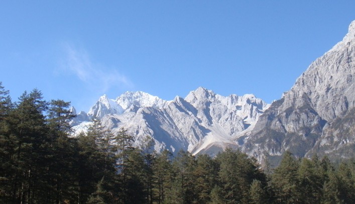 玉龍雪山位于玉龍納西族自治縣境內(nèi),是北半球最南的大雪山。南北長(zhǎng)35公里,東西寬13公里,面積960平方公里,高山雪域風(fēng)景位于海拔4000米以上,以險(xiǎn)、奇、美、秀著稱(chēng)于世,隨著時(shí)令和陰晴的變化,有時(shí)云蒸霞蔚、玉龍時(shí)隱時(shí)現(xiàn);有時(shí)碧空如水,群峰晶瑩耀眼;有時(shí)云帶束腰,云中雪峰皎潔,云下崗巒碧翠;有時(shí)霞光輝映,雪峰如披紅紗,嬌艷無(wú)比。整個(gè)玉龍雪山集亞熱帶、溫帶及寒帶的各種自然景觀于一身,構(gòu)成獨(dú)特的“陽(yáng)春白雪”主體景觀。雨雪新晴之后,雪格外的白,松格外的綠,掩映生態(tài),移步換形,很像是白雪和綠松在捉迷藏,蔚為奇觀。