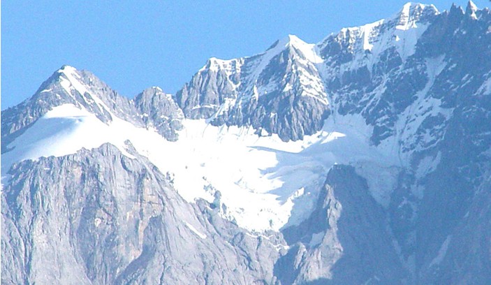“白水一號(hào)”現(xiàn)代冰川長(zhǎng)達(dá)2.7公里,位于在玉龍雪山主峰扇子陡的正下方。從山腳望去,如同一條瀑布懸掛天際,令人震撼不已。版權(quán)所有山東聊城聊之旅國(guó)際旅行社有限公司,轉(zhuǎn)載必究!冰舌部分的冰塔林,像一把把刀戟直刺蒼穹,在陽(yáng)光的照射下,不白而綠、綠雪萬(wàn)仞,仿佛一塊塊巨大的翡翠碧玉鑲嵌在怪石嶙峋之間,此景即為已故的原臺(tái)灣故宮博物院副院長(zhǎng)李霖燦先生筆下的“綠雪奇峰”。靠近冰川,只聽(tīng)見(jiàn)有“嘩啦啦”的流水聲,那是冰川融化后形成的冰河。前方的扇子陡發(fā)出陣陣巨響,那是雪崩時(shí)發(fā)出的響聲,就像在“滾雪牛”。千萬(wàn)年來(lái),扇子陡始終如一、源源不斷的為冰川補(bǔ)給著新雪。變幻莫測(cè)的雪山,不時(shí)漫天雪花,令人舉步維艱;不時(shí)風(fēng)起云涌,令人略感寒意;不時(shí)光芒萬(wàn)丈,恍若隔世,不禁感慨萬(wàn)千。