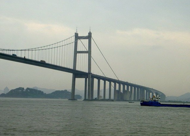 大橋全長15.76公里,主橋長4.6公里,橋面雙向6車道,主跨888米,以跨度大且不用鋼鎖吊住的高難度造橋技術聞名?;㈤T大橋的建成通車,跨海連接了虎門、番禺兩地,使東莞成為溝通穗、港以及珠江兩岸和深圳、珠海兩個特區(qū)的交通樞紐。