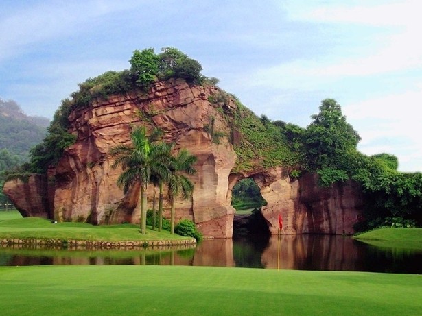 番禺蓮花山是廣東省重點風(fēng)景名勝區(qū),位于番禺市東部珠江口獅子河畔。蓮花山由48座紅色砂巖低山組成,海拔最高為108米,占地2.54平方公里。其中有座麒麟峰,因峰頂上有一塊酷似蓮花的巖石,所以后人把這座山稱為蓮花山。蓮花山在古時候是一個石礦場,經(jīng)幾百年的采礦,蓮花山上或懸崖峭壁,或奇巖異洞,或嵯峨幽邃,或雄偉挺拔,形成了天然與人工相結(jié)合的獨特景觀,堪稱嶺南一秀。
