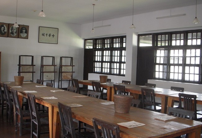 校長(zhǎng)室和總理室設(shè)在樓上。校長(zhǎng)室是蔣介石辦公和休息的地方,里面的擺設(shè)是按原貌恢復(fù)的。墻上貼著第一期學(xué)生的名錄,包括姓名、籍貫、年齡、評(píng)語(yǔ)等項(xiàng)。評(píng)語(yǔ)一欄由蔣校長(zhǎng)親自填寫。每天中午,蔣校長(zhǎng)都找?guī)孜粚W(xué)生問(wèn)話、談心,將了解到的情況,寫到評(píng)語(yǔ)上。他在陳賡的評(píng)語(yǔ)欄寫上這樣的評(píng)語(yǔ):“此人外形文弱,但性格穩(wěn)重,能刻苦耐勞、可以帶兵”。可見(jiàn)他能細(xì)致觀察學(xué)生的性格、能力和特點(diǎn)。