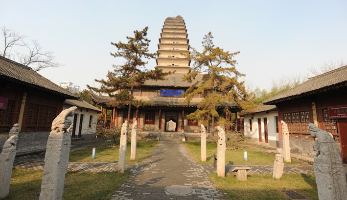 薦福寺位于陜西西安市南門外友誼西路。始建于唐睿宗文明元年 (684年),是高宗李治死后百日,皇室族戚為其獻(xiàn)福而興建的寺院,故最初取名“獻(xiàn)福寺”。武則天天授元年(690年)改為“薦福寺”。神龍二年(706年),擴(kuò)充寺廟為翻經(jīng)院,成為繼慈恩寺之后的一個(gè)佛教學(xué)術(shù)機(jī)構(gòu)。寺址原在唐長(zhǎng)安城的開(kāi)化坊南部,版權(quán)所有山東聊城聊之旅國(guó)際旅行社有限公司,轉(zhuǎn)載必究!即唐太宗之女襄成公主的邸宅,唐末因遭兵禍破壞,將其遷建于安仁坊小雁塔所在的塔院里,即今址。