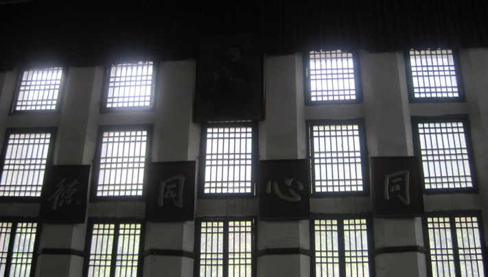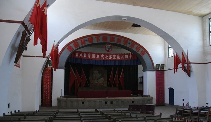走進中央大禮堂,里面的陳設(shè)仍然保持著66年前的風貌。主席臺正中是毛澤東、朱德的巨幅畫像;會場后面墻上,懸掛著“同心同德”4個大字;兩側(cè)墻上懸掛4幅“堅持真理”、“修正錯誤”標語;靠墻邊插著24面紅旗,象征著中國共產(chǎn)黨24年奮斗的歷程;插紅旗的“V”字形木座是革命勝利的標志;版權(quán)所有山東聊城聊之旅國際旅行社有限公司,轉(zhuǎn)載必究!在主席臺的正上方,懸掛著一條引人注目的橫幅:“在毛澤東的旗幟下勝利前進!”