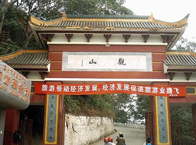 觀山寺群位于高州市之西的觀山上,觀山東臨鑒江,南對南宮嶺,山清水秀,風(fēng)景迷人。明代以來,這里先后建起了觀山寺、玉泉寺、呂仙殿、潘仙殿、報德祠等寺廟建筑群。民國期間,又開辟了中山公園,建有中山亭、若虛亭、茂植亭、詠風(fēng)亭、襟江亭、曠怡亭和斷碑亭等建筑,使觀山增添了不少色彩。