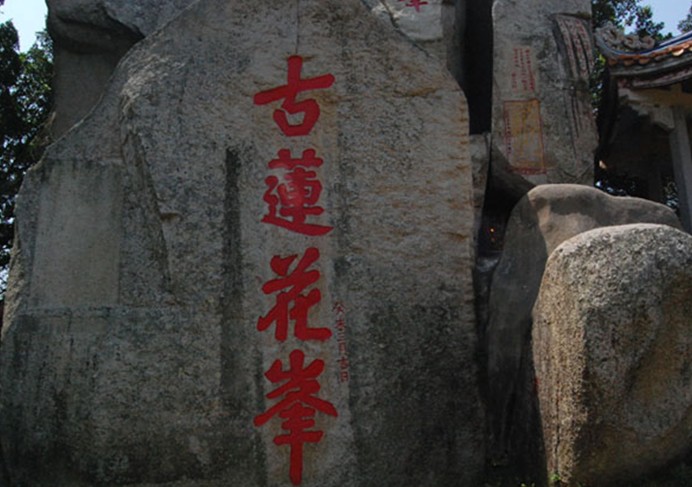 公元一二七八年,南宋民族英雄文天祥率領義軍,追蹤十歲小皇帝趙炳至潮陽蓮花峰,在此登峰望帝,眺望茫茫大海,極目尋望帝舟蹤影,帝舟片影無蹤。山峰是由幾片縱裂的花崗巖石拱圍拼湊而成,從陸上遠眺儼然若一朵含苞待放的蓮花,從海上觀之,則仿佛是一朵出水芙蓉,故文天祥將該峰命名為“蓮花峰”并刻石。還有許多名人石刻,其中有黑旗軍將領劉永福的草書“虎”字、書法家于右任和劉海粟等的題字等?,F(xiàn)代作家老舍也在這里題詩曰:“遙憐信國此峰頭,水黑云寒望帝舟;今日紅旗明碧海,神州兒女競風流。”