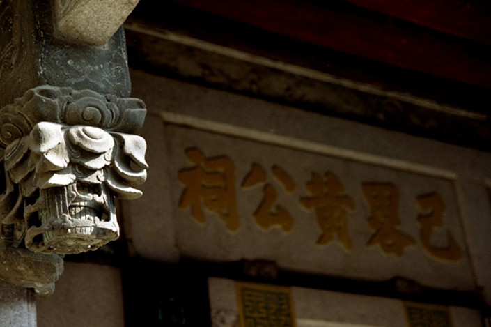當我們走過古城義安路,來到鐵巷頭,就可見到己略黃公祠,首先見到祠堂正面外觀,正中為凹斗門樓,門首橫額正面陰刻“己略黃公祠”,背面鐫有“孝思維則”,門樓門面分布四幅沉刻文字,內容為嘉應人氏溫仲和的“己略黃公祠頌”和兩幅沉刻圖畫;門樓馬面坡屋架裝有《封神演義》人物故事連環(huán)畫幅石雕飾品,這些石雕飾品,人物造型、結構嚴謹、表情生動、過渡自然,刻劃出古代西周時期一個轟轟烈烈的歷史場景。同時,當時工匠根據(jù)結構要求,主受力的梁用浮雕刻,不影響結構受力;其它采用通雕刻,安裝在一起既符合結構要求又適合審美觀賞,充分體現(xiàn)能工巧匠構思的巧妙……