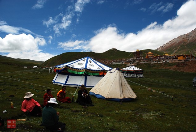 貢薩寺位于距青海玉樹州治多縣城西9公里、海拔4300米的嘉吉阿尼噶寶山坡上,是12世紀(jì)由拔噶舉派的創(chuàng)始人拔達(dá)瑪旺秀的心傳弟子秋杰次成幫巴創(chuàng)建,由此產(chǎn)生秋杰活佛轉(zhuǎn)世系統(tǒng)?!〉诙狼锝芩髂显蛿U(kuò)建寺院并改宗為直貢噶舉派。公元15世紀(jì),五世達(dá)賴昂旺洛楹嘉措又將該寺改宗為格魯派寺院。1981年寺院從治多縣城北面鬧布旺江舊址搬遷到現(xiàn)在的新址。