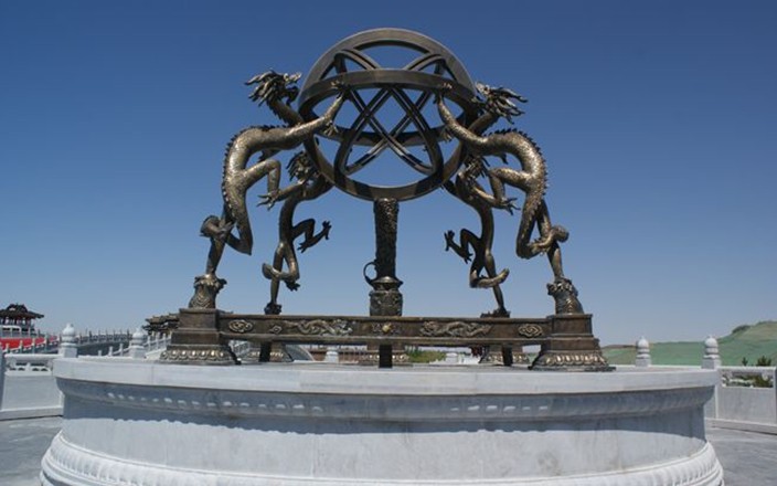 黃河壇全稱是“中華黃河壇”,也稱為“中華黃河圣壇”,是黃河金岸的標(biāo)志性建筑,位于寧夏回族自治區(qū)吳忠青銅峽市,為了禮敬黃河、祭拜黃河、感恩黃河,黃河壇于2010年5月開(kāi)工建設(shè),2011年4月底建成,總設(shè)計(jì)是馮欽鐸教授。黃河壇長(zhǎng)999米,寬200米,建筑面積是6.5萬(wàn)平方米,背靠賀蘭山山脈,隔河屹立牛首山,左傍萬(wàn)里黃河臂彎,右依青銅峽峽口。站在黃河圣壇的位置向下望去,眼前的黃河及灘地正好成一個(gè)太極八卦圖。2011年5月8日,在第三屆中國(guó)(寧夏)國(guó)際文化藝術(shù)旅游博覽會(huì)•感恩母親河活動(dòng)中,中華黃河壇首次亮相。