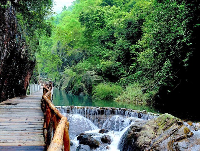 對于大多數(shù)來白水寨觀光的游客來說,最吸引他們的莫過于是那道中國內(nèi)地落差最大的瀑布了!登山觀瀑,親近山水,版權(quán)所有山東聊城聊之旅國際旅行社有限公司,轉(zhuǎn)載必究!在炎熱的夏天享受屬于高山的清涼,更讓人感覺無比快意。在白水寨登山,除了號稱“天南第一梯”的登山步道,濱水而建的親水棧道其實(shí)更得游客歡心。它貼著溪流,指向山谷深處,沿途都有綠蔭遮蔽。走在上面時,清新的空氣、和煦的山風(fēng)與溫暖的陽光伴隨著滿山的翠綠和潺潺的流水聲而來,感覺總是那么舒服,所以人們走得特別慢,為的就是一邊好好地欣賞周遭的美景,一邊盡情呼吸高山流瀑釋放出的美妙空氣!