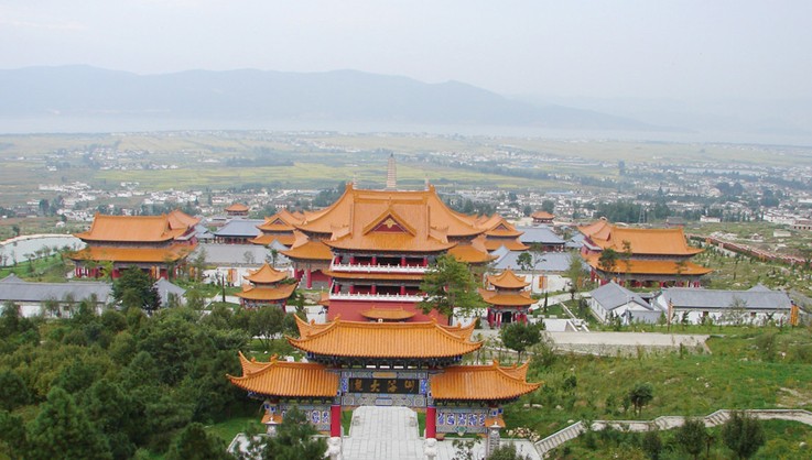 2005年4月崇圣寺大規(guī)?;謴?fù)重建竣工,結(jié)束了崇圣寺三塔近百年來“有塔無寺”的歷史,形成了塔寺輝映的美景。崇圣寺的規(guī)劃布局以保護三塔為核心,源于歷史,超越歷史,借鑒了國內(nèi)外著名寺廟布局的特點,集唐、宋、元、明、清歷代建筑特色之精華,按主次三軸線,八臺九進十一層次進行規(guī)劃建設(shè)。整個仿古建筑群落占地600畝,建筑面積20080平方米,總投資1.82億元。主軸線上依次建有大鵬金翅鳥廣場、山門、護法殿、彌勒殿、十一面觀音殿、大雄寶殿、阿嵯耶觀音閣、山海大觀石牌坊、望海樓。版權(quán)所有山東聊城聊之旅國際旅行社有限公司,轉(zhuǎn)載必究!中軸線兩旁和次軸線上建有法物流通處、方丈堂、客堂、齋堂、羅漢堂、千佛廓、祖師殿、佛教研究院。寺內(nèi)塑像以《張勝溫畫卷》、明代梨廣修所塑的“五百羅漢像”和三塔出土文物為藍本創(chuàng)作而成,融合了“禪宗”、“密宗”的特點,形成獨特的大理雕像風格。寺內(nèi)617尊(件)佛像、法器均用青銅澆鑄而成,用銅千余噸,其中599尊(件)為貼金、彩繪,創(chuàng)全國之最。