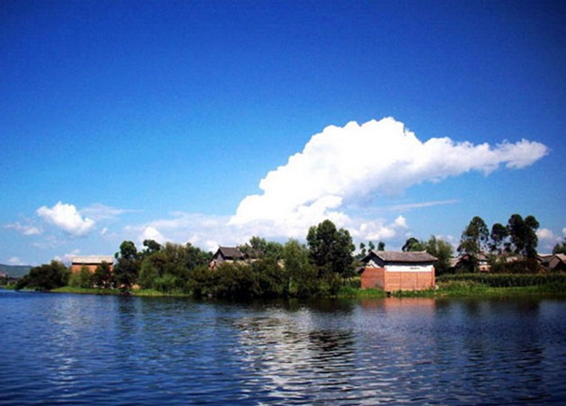 西湖在云南高原濕地中景觀獨特,白族風俗濃郁,歷史文化[2]積淀深厚,是展示濕地保護成效和濕地生態(tài)環(huán)境教育的理想基地。水域面積約4.3平方公里,平均水深1.8米、最深處近10米。湖水四季清澄如鏡,湖中菱荷青青,蘆葦搖曳;六個村莊、七個島嶼散落水中,構(gòu)成村中有湖、湖中有村的田園風景。蕩舟湖上,四周的田園屋舍,湖中的魚池菜畦,倒映湖中,嬉蕩之間,伴著清風送來的白家漁歌,游客自會陶醉在“一片瓊瑤水,千重翡翠山”的畫境之中。