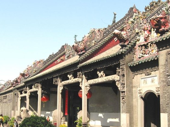 陳家祠堂坐落于廣東省廣州市中山七路。陳家祠堂又稱“陳氏書院”,始建于清光緒十四年(1888年),光緒二十年(1894年)落成,它是由清末廣東省七十二縣的陳姓聯(lián)合建造的,是廣東省著名的宗祠建筑。陳家祠堂的建筑結(jié)構(gòu)可分為三軸、三進(jìn),建筑面積達(dá)8000平方米。祠堂的每進(jìn)之間既有庭院相隔,又利用廊、廡巧妙地聯(lián)接起來,共有九座廳堂和六個(gè)院落,祠堂的整體布局上下對稱,殿堂樓閣,虛實(shí)相間,氣勢雄偉。“聚賢堂”是陳家祠堂中軸線的主殿堂,也是陳家祠整個(gè)建筑組合的中心,堂的正面是一座寬闊的石露臺(tái),周圍用嵌有鐵花的石欄板環(huán)繞。祠堂建成之初時(shí)的聚賢堂是供族人集會(huì)之用,后來改作宗祠,兩邊的側(cè)房供書院使用。