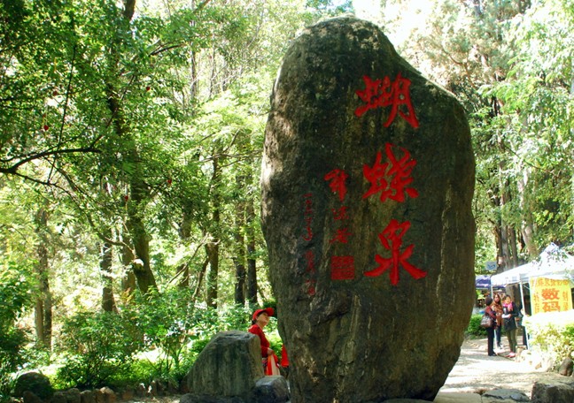 公園以“蝴蝶泉”而聞名。蝴蝶泉是一個(gè)方形潭,占地約50平方米左右,池中泉水清澈,泉底鋪著鵝卵石,水從白沙中涌出,還不時(shí)冒著氣泡,四周砌有大理石欄桿。“蝴蝶泉”三字為郭沫若所題。版權(quán)所有山東聊城聊之旅國際旅行社有限公司,轉(zhuǎn)載必究!泉被兩棵粗壯彎曲的百年合歡樹濃陰覆蓋。蝴蝶泉公園內(nèi)種有鳳尾竹、圣誕樹等林木,泉后的松林、柏林、棕櫚林、茶林、杜鵑林、毛竹林,蝴蝶泉邊合歡樹、酸香樹、黃連木等本地特有的芳香樹種。據(jù)說以前每年農(nóng)歷三四月,云弄峰上的百花齊放,泉邊的大合歡樹散發(fā)出一種清香,這種清香吸引著成千上萬只蝴蝶從四面八方飛來,在蝴蝶泉四周飛舞。蝶大如巴掌,小如銅錢,呈黃、紅、白等七彩,品種多達(dá)上百種。無數(shù)蝴蝶還勾足連須,首尾相銜,一串一串的從大合歡樹上垂掛至水面,五彩繽紛,甚為奇觀。