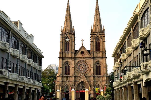 廣州石室圣心大教堂坐落于廣州市區(qū)中心的一德路,是天主教廣州教區(qū)最宏偉、最具有特色的一間大教堂。該教堂建于1863年,落成于1888年,歷時(shí)25年始建成,至今有130多年的歷史。由于教堂的全部墻壁和柱子都是用花崗巖石砌造,所以又稱之為"石室"或"石室耶穌圣心堂"、"石室天主教堂"。是省重點(diǎn)文物保護(hù)單位。