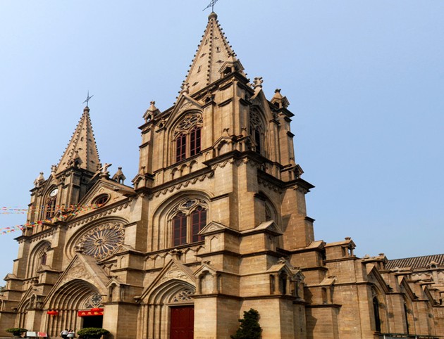 石室圣心大教堂(Shishi Sacred Heart Cathedral)是由法國設(shè)計(jì)師設(shè)計(jì),中國工匠建造而成,有著“遠(yuǎn)東巴黎圣母院”之譽(yù)