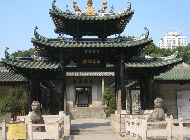 “五仙觀”解放前在惠福西路內(nèi)街,是廣州建城2000年的歷史標志,傳說遠古年代有五仙人騎著五色羊,五羊銜著谷穗降臨廣州海珠廣場原五仙門電廠附近(電廠原址是五仙街)。五仙喜降臨,令廣州風(fēng)調(diào)雨順,五谷豐登,國泰民安。為紀念五仙福祉,稱廣州為“羊城”。