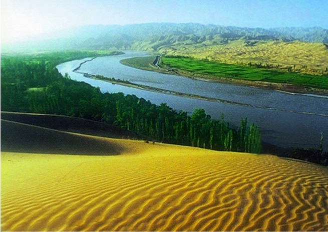 這里有中國最大的天然滑沙場,有總長800米、橫跨黃河的“天下黃河第一索”--沙坡頭黃河滑索,有黃河文化的代表一一古老水車,有中國第一條沙漠鐵路,有黃河上最古老的運輸工具——羊皮筏子;有沙漠中難得一見的海市蜃樓可以騎駱駝穿越騰格里沙漠,可以乘坐越野車沙海沖浪,咫尺之間可以領略大漠孤煙、長河落日的奇觀。黃河南岸是一塊三面環(huán)沙,一面靠山的“U”半島,這里地形優(yōu)越,景觀奇特,民俗淳樸,資源豐富,可以在演繹中心觀看具有異域風情的、民族特色的歌舞表演,可以住宿黃河塞上人家干農家活、吃農家飯、睡農家炕、享農家樂;濱河浴場可以體驗母親河的沐浴,秦代長城和陶窯在這里留下了千古不朽的遺址。