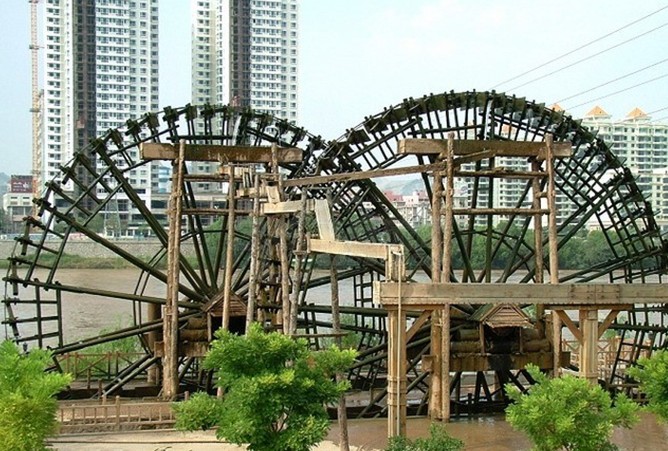 水車發(fā)展第三階段。到了元明時(shí)代,輪軸的發(fā)展更進(jìn)步。一架水車不僅有一組齒輪,有多至三組,而有"水轉(zhuǎn)翻車"、"牛轉(zhuǎn)翻車"或"驢轉(zhuǎn)翻車",可以依風(fēng)土地勢(shì)交互為用。這項(xiàng)發(fā)展,使翻車的利用更有效益。翻車打東漢三國(guó)時(shí)代發(fā)明以來(lái),一直停滯在人力的運(yùn)轉(zhuǎn)。至此,利用水力和獸力以為驅(qū)動(dòng),版權(quán)所有山東聊城聊之旅國(guó)際旅行社有限公司,轉(zhuǎn)載必究!使人力終于從翻車腳踏板上解放。同時(shí),也因轉(zhuǎn)軸、豎輪、臥輪等的發(fā)展,使原先只用水力驅(qū)動(dòng)的筒車,即使在水量較不豐沛的地方,也能利用獸力,而有所貢獻(xiàn)。另外,則有"高轉(zhuǎn)筒車"的出現(xiàn)。地勢(shì)較陡峻而無(wú)法別開(kāi)水塘的地方,也能低水高送,有所開(kāi)發(fā)。這是中國(guó)水車發(fā)展的第三階段。元明之后,中國(guó)水車的發(fā)展便再?zèng)]有多少特出的成就了。