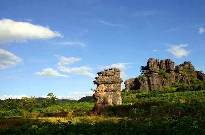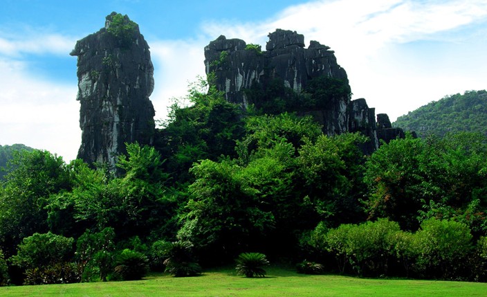 駱駝山位于桂林七星公園內(nèi)。駱駝山即駝峰,在普陀山南麓,是地殼運(yùn)動(dòng)融蝕后的一塊殘石,原名酒壺山。廣西駱駝山在廣西桂林七星公園內(nèi),為桂林市名山之一,原名酒壺山。因其狀態(tài)酷似駱駝,遂名之。但它又酷似一把古式酒壺,因此又名壺山。有壺身、壺嘴,壺嘴下有塊石頭,恰似酒杯。壺嘴(山南)上刻有“壺山”二字,旁鐫“雷酒人之墓”。雷酒人原名雷鳴春,號(hào)亮工,明末江南儒士。他俠義助人,醫(yī)道甚高,善詩(shī)文,嗜酒,每飲必醉,人稱“雷酒人”。他結(jié)廬山下,遍栽桃李,每當(dāng)春暖花開,如一片菲紅的彩霞,故有“壺山赤霞”之譽(yù),為桂林續(xù)八景之一。每當(dāng)晨昏,霞光映耀山石,色澤斑斕,頗為壯觀。明清以來,山下遍植桃樹,若逢春至,桃花爛漫,江霞紫霧,分外妖嬈。