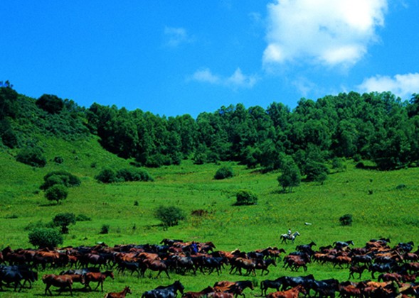 關(guān)山草原位于甘肅省天水市張家川回族自治縣和陜西隴縣之間。是我國西北部內(nèi)陸地區(qū)唯一以山地草原為主體的省級風景名勝區(qū)。景區(qū)內(nèi)薈萃了森林、草原、河流、山巒、峽谷等自然景觀,純樸自然又不失壯觀。這里有金錢豹、林麝、錦雞等珍稀動物,還有野兔、山雞等可以捕獵的動物,是盡情體味山野生活之趣的好地方。享有“小天山”之美譽。這里,地貌與中歐阿爾卑斯山相似,幽澗水澤兼具,草原森林 相間,地勢廣闊,水肥草美,牧馬成群,景色秀麗。氣候受垂直地帶性地理條件的影響,冬春無界,夏秋相連,有“關(guān)山六月寒凝霜” 的寫照。自古以秦非子養(yǎng)馬而聞名于世,為陜關(guān)山草原 人間仙境,我國內(nèi)陸中東部地區(qū)最大和唯一的天然草原。